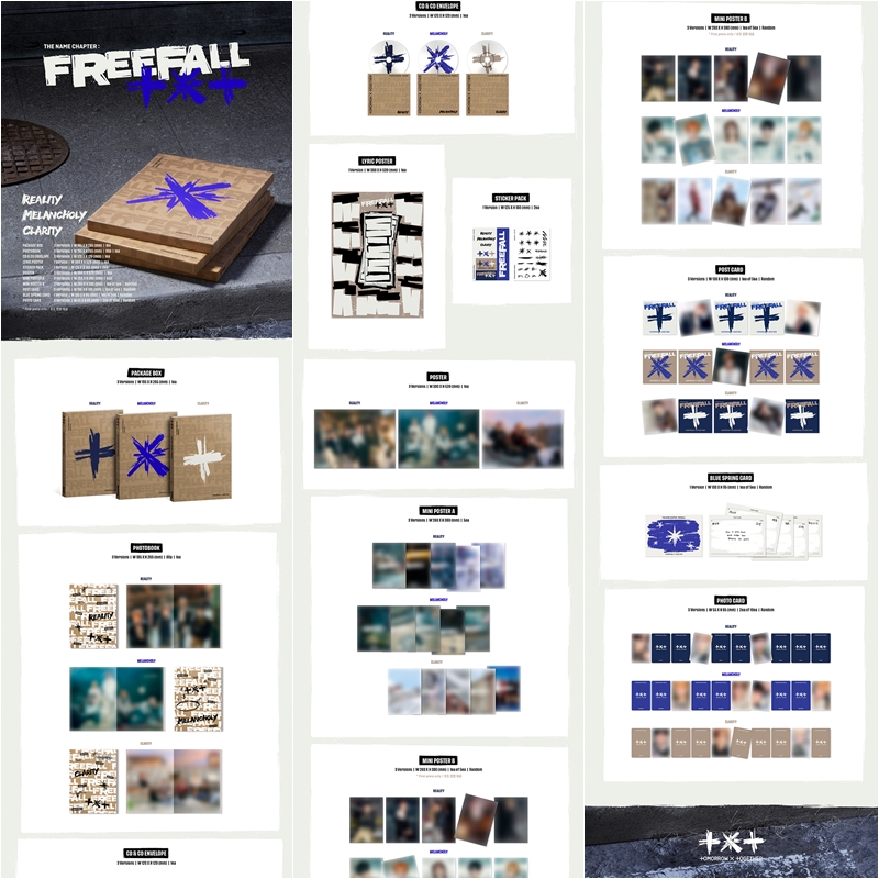 · Package Box: 1 type per version / W195 X H265 · Photobook: 1 type per version / W195 X H265 / 80 Pages · CD & CD Envelope: 1 type per version / W120 x H120 · Lyrics Poster: 1 type / W380 X H520 · Sticker Pack: 2 types / W125 X H180 · Poster: 1 type per version / W380 X H520 · Mini Poster A: 5 types per version / W260 X H380 · Mini Poster B (First Press Only): Random 1 out of 5 types per version / W260 X H380 · Postcard: Random 1 out of 5 types per version / W130 X H130 · Bluespring Card: Random 1 out of 5 types / W130 X H95 · Photocard: Random 2 out of 10 types per version / W55 X H85 Product DetailsPackage(Weverse Albums / Random Ver.)